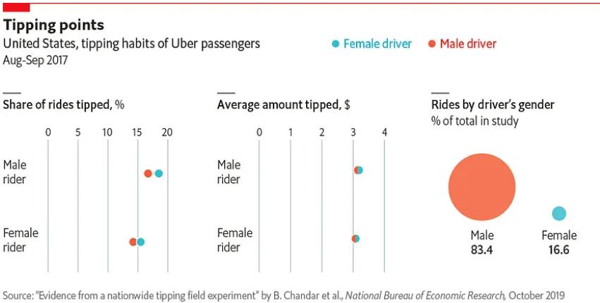 예를 들어, 우버 승객의 팁 습관에 대한 차트에서
