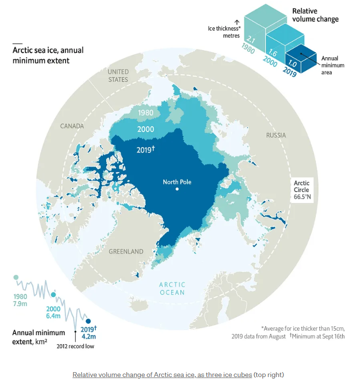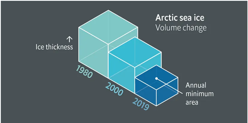 예를 들어, The Economist는 북극해 얼음 부피 변화를 나타내기 위해