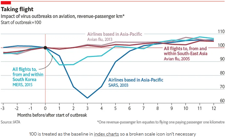 축을 0에서 시작하면 중요한 차이점이 보이지 않습니다. The Economist에서는