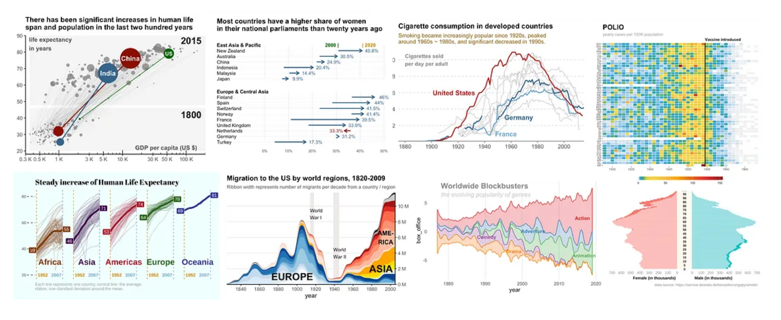 This article summarizes effective strategies to visualize temporal changes, illustrated with inspiring graphic examples.