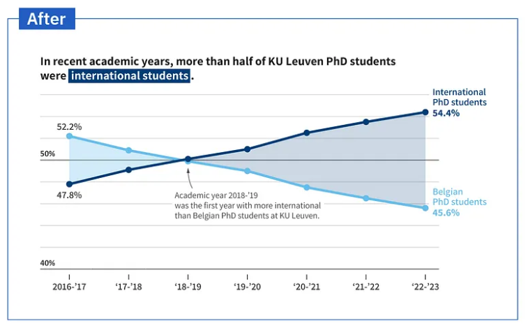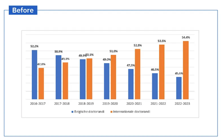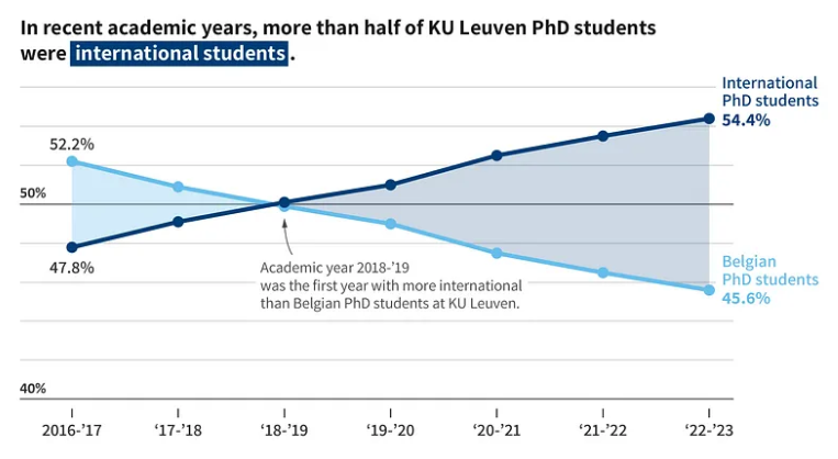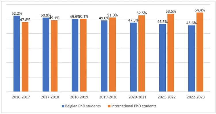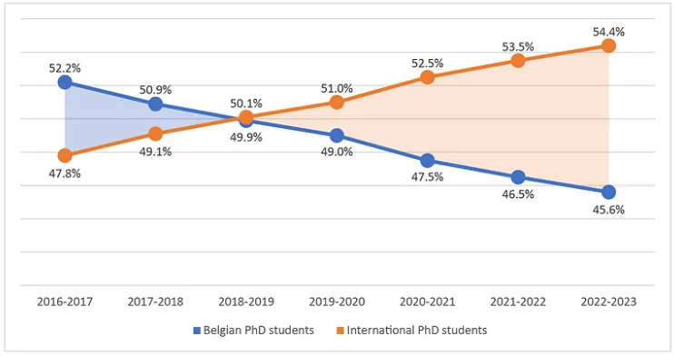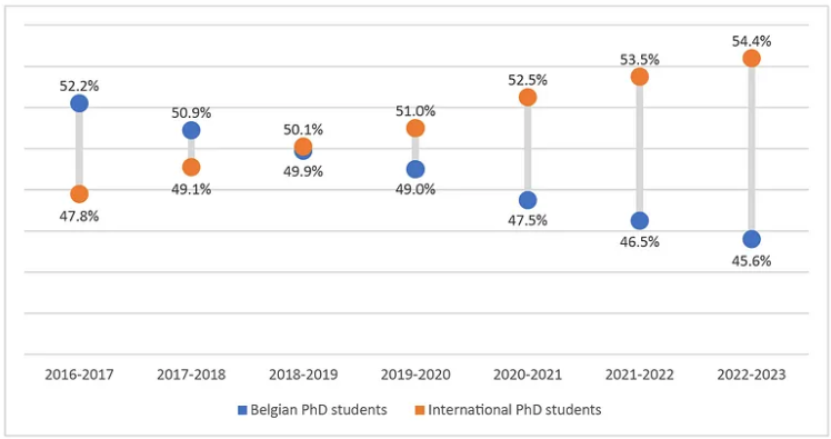 오늘은 그 중 하나인 벨기에 vs 국제 박사과정 학생 비율 차트를