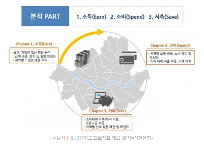 첫번째 결과물인 '서울시 생활 금융지도-소득 편'과 '소비편'을 발표한 바 있습니다.