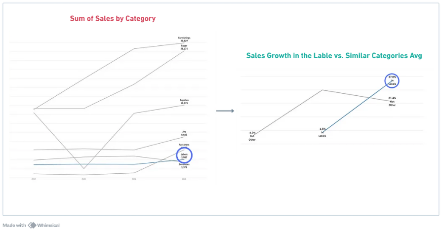 데이터 시각화의 힘은 비교를 통한 인사이트 도출에 있습니다.