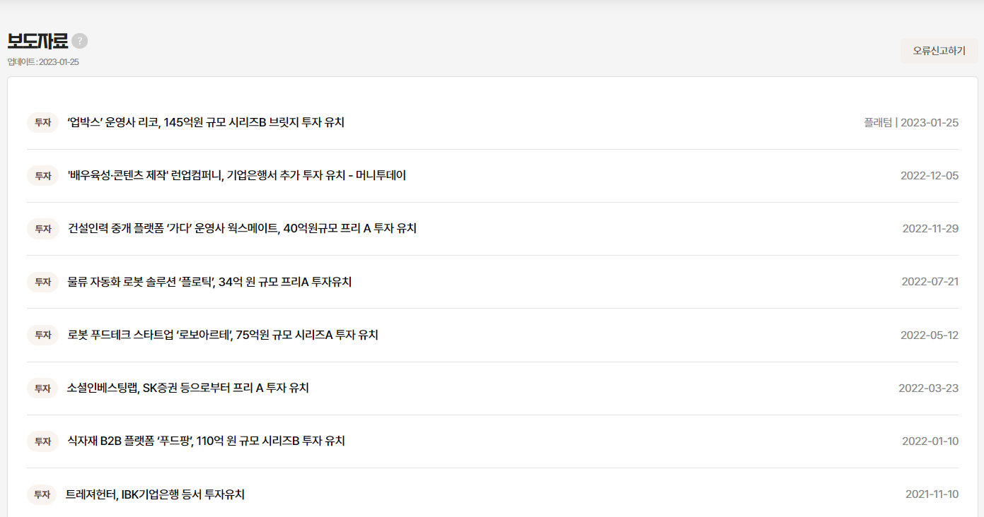 지금까지 스타트업 회사들은 특정 투자사의 투자 이력을