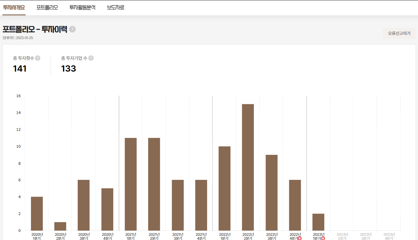 이러한 기능을 이용하면 투자사의 투자 타임라인을 통해 과거와 현재의 투자성향 변화나