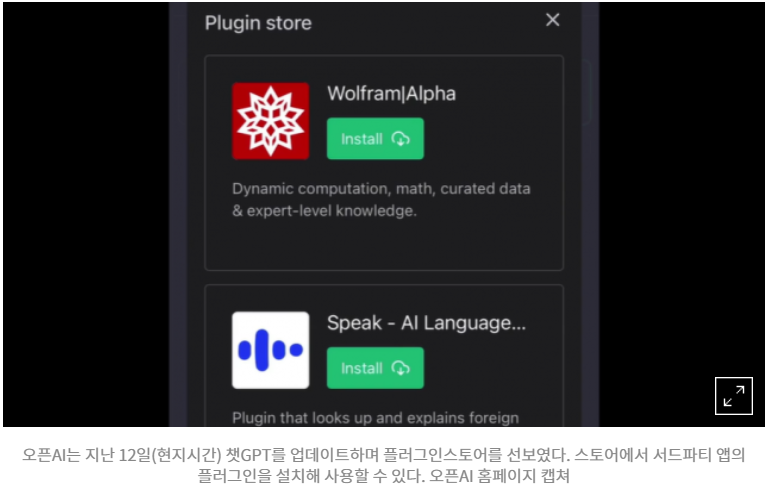 오픈AI는 챗GPT에 서드파티 애플리케이션(앱)을 플러그인으로 통합하여