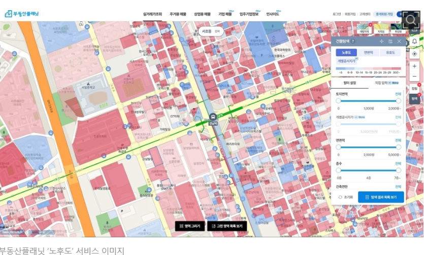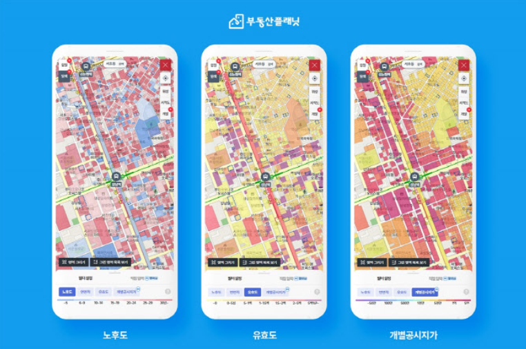 전국 3940만 필지와 건물 791만 동의 부동산 노후도 지수를 ‘탐색’ 카테고리를 통해 제공하고 있으며,
